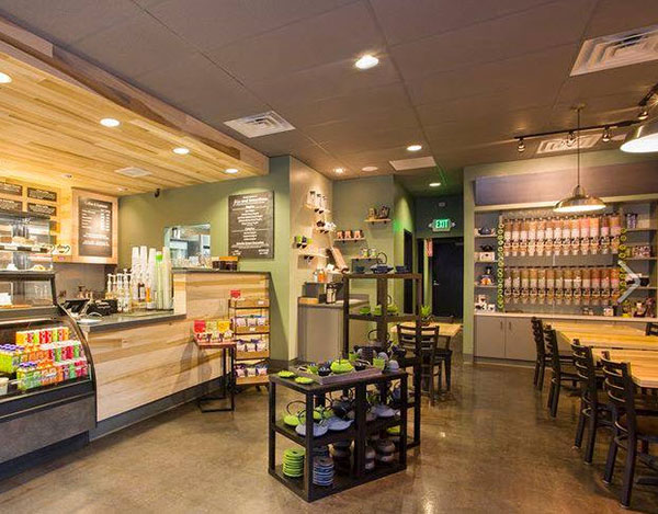 30 seat Tea shop. Remodeled a 1200 square foot existing retail space. Designed interior and small kitchen area.